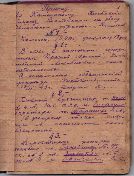 Предприятие начало свою деятельность в феврале 1943 года, одновременно с освобождением города от немецко-фашистских захватчиков, и вот уже 80 лет бережно хранит традиции русского хлебопечения. С первых дней работы на производстве преобладал ручной труд, печи работали на твердом топливе, подача муки на производство осуществлялась вручную.