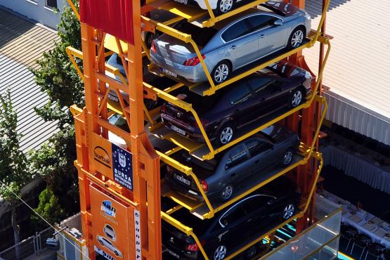 Роторные парковки построены по принципу «колеса обозрения»: машина останавливается на парковочном месте, а затем поднимается на определенную высоту специальным механизмом. Там она и находится, пока хозяин занимается своими делами.