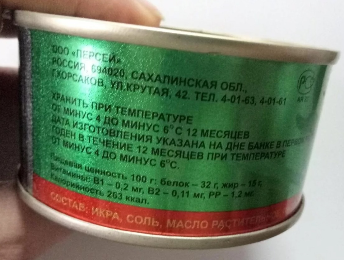 Итак - выявлена фальсифицированная «Икра лососевая зернистая» баночная, производителем которой согласно маркировке являются ООО «Персей» (ИНН 6504027411, Сахалинская область, г. Корсаков, ул. Крутая, д. 42) и/или его правопреемник ООО «Нави» (ИНН 6504011323 Сахалинская область, г. Корсаков, ул. Нагорная, д. 57.