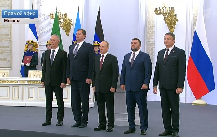 В пятницу, 30 сентября, в Кремле Владимир Путин и главы ДНР, ЛНР, Херсона и Запорожья — Денис Пушилин , Леонид Пасечник ,