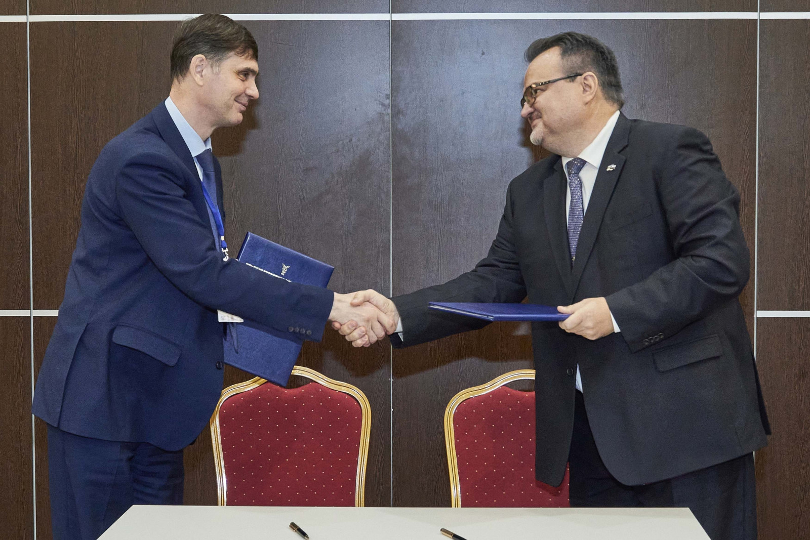 В Ростове на межрегиональной конференции «Производственная кооперация и развитие промышленного потенциала предприятий» министр промышленности и энергетики региона Андрей Савельев и руководитель промышленного технопарка «Азовский» Николай Сидоров подписали двустороннее соглашение о взаимодействии в рамках реализации проекта на территории Ростовской области.