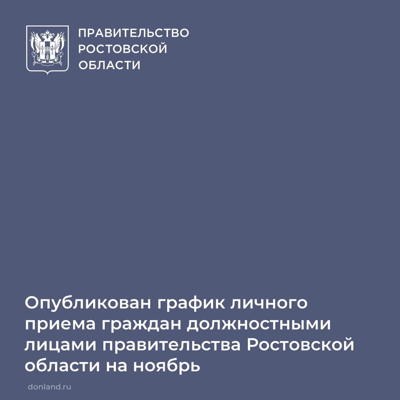 ДОЛЖНОСТНЫЕ ЛИЦА ПРАВИТЕЛЬСТВА РОСТОВСКОЙ ОБЛАСТИ ПРОВЕДУТ ЛИЧНЫЕ ПРИЕМЫ ГРАЖДАН В НОЯБРЕ