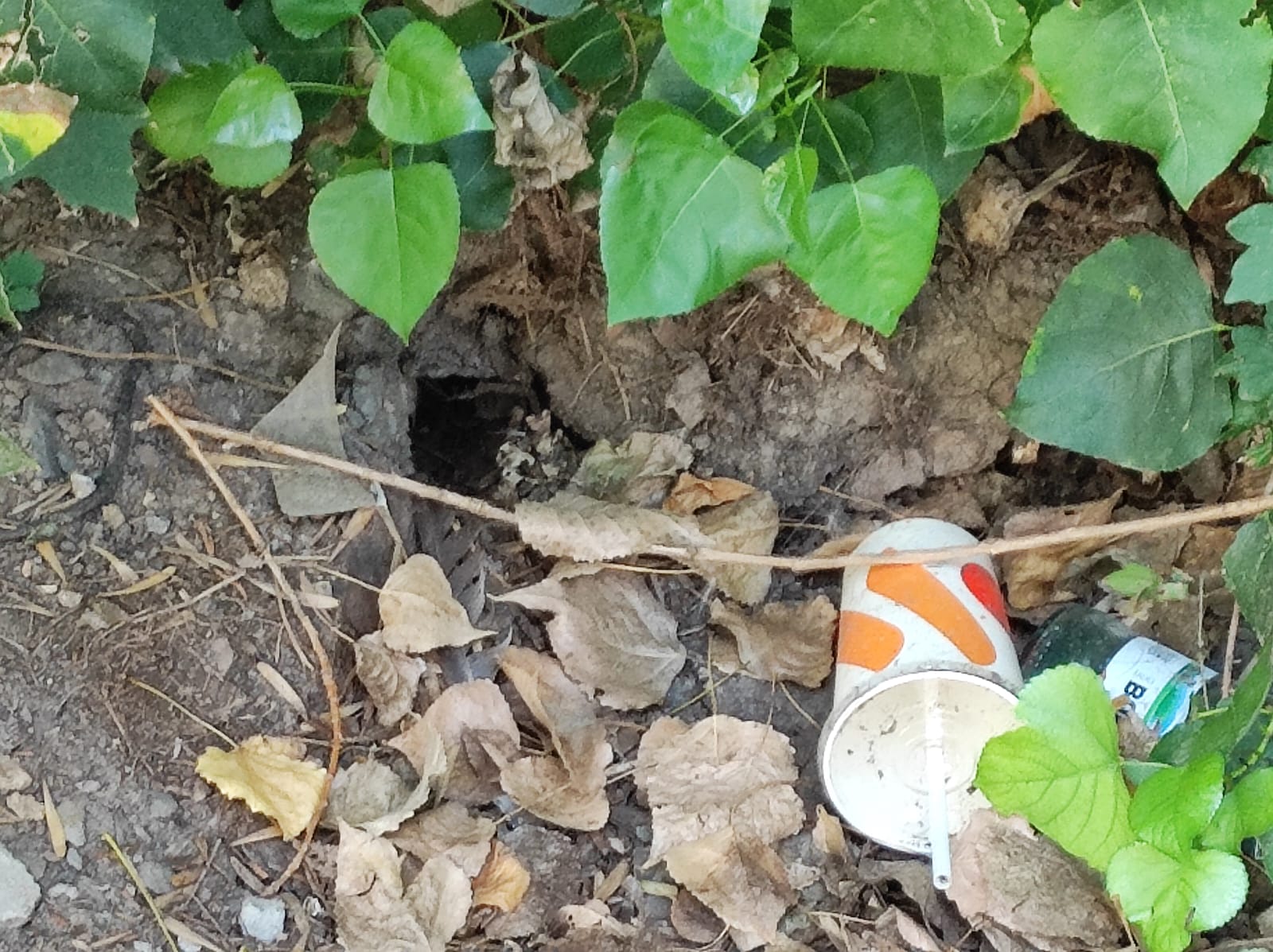"А сегодня днём внучка увидела крысу, очень испугалась. Шмыгнула крыса в норку возле контейнерной площадки - я эту норку только и сфотографировала."