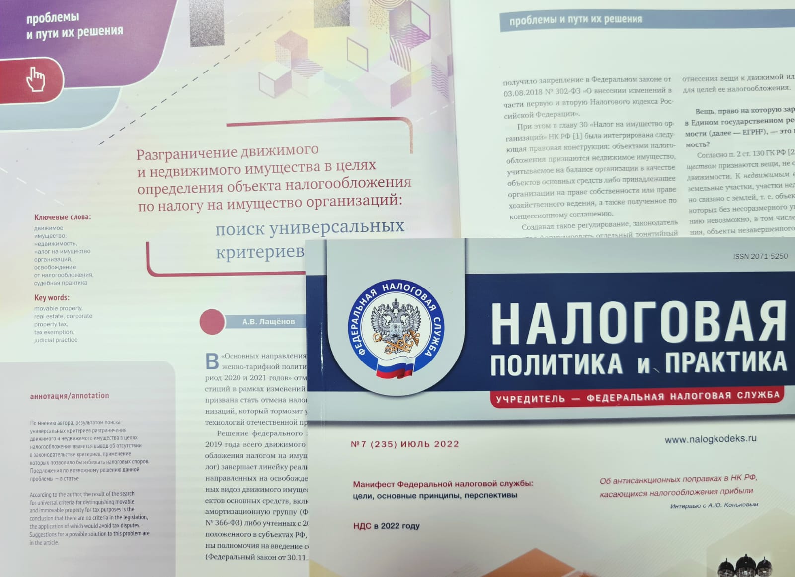 Подробности читайте в статье «Разграничение движимого и недвижимого имущества в целях определения объекта налогообложения по налогу на имущество организаций: поиск универсальных критериев» в журнале « Налоговая политика и практика » за июль 2022 года.