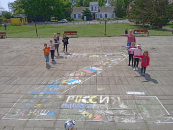 На центральной площади дети мелом на асфальте изобразили большую букву «Z» и разукрасили ее разноцветными рисунками, надписями и пожеланиями.