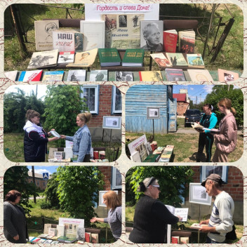 В этот теплый весенний день на улице возле здания Базковской сельской библиотеки книжный бульвар вновь встретил жителей и гостей нашей станицы. Из книг, представленных на книжной выставке «Гордость и слава Дона», все желающие могли познакомиться с интересными фактами из биографии нашего земляка, посмотреть семейные фотографии, прочесть строки из уже полюбившихся произведений М.А. Шолохова.