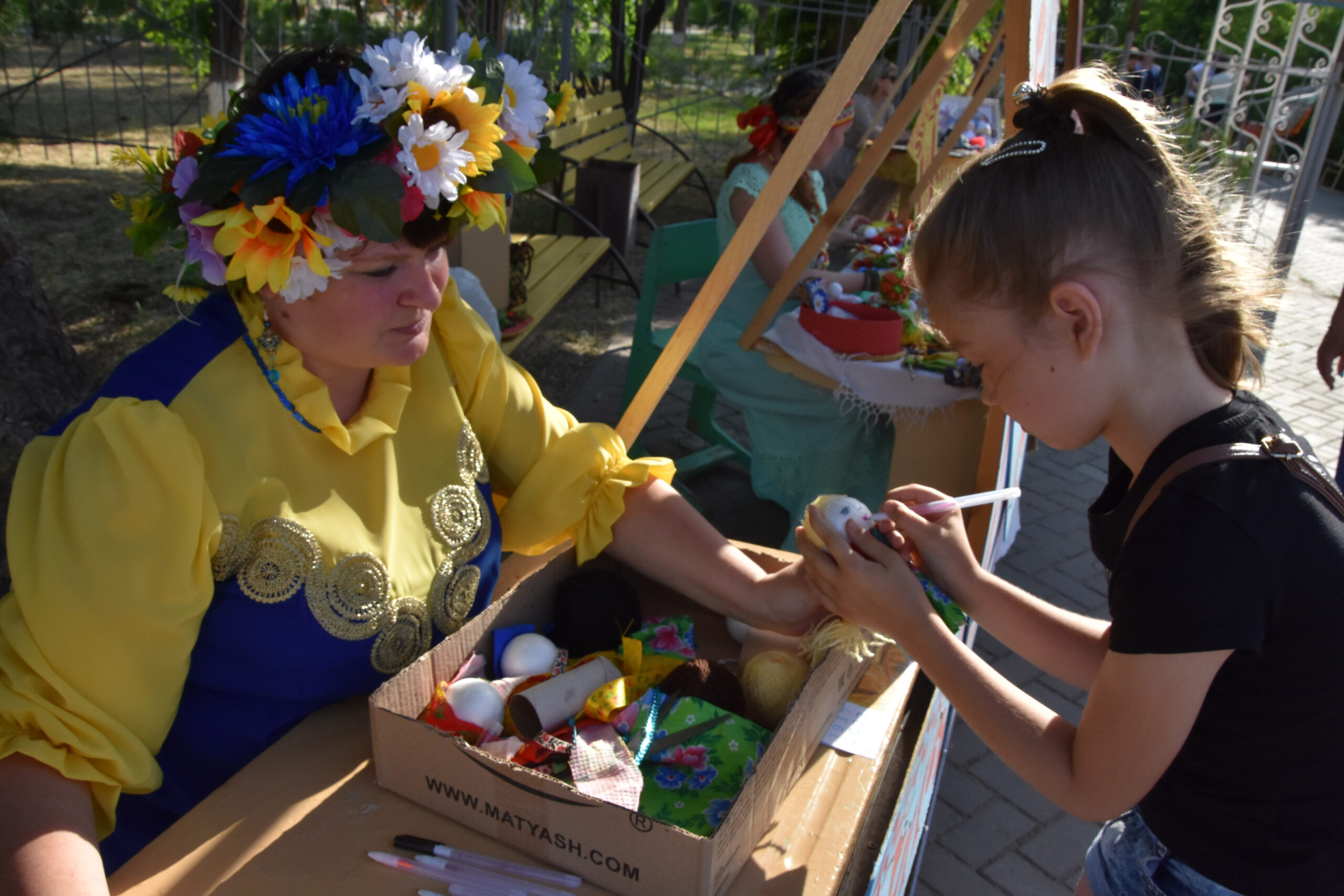 А на центральной дорожке парка развернула работу ярмарка декоративно-прикладного творчества «Аллея мастеров». Участники и гости праздника могли познакомиться с необыкновенными работами более 20-ти умельцев из всех сельских поселений нашего и Целинского районов, Калмыкии.