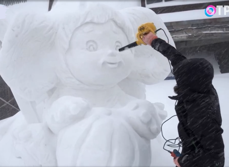 «Скульпторы нашей команды имеют не одно образование. Это и повар, и полицейский, которые могут делать такие прекрасные скульптуры. На резку одной фигуры уходит два, два с половиной дня. До этого снег забивался в формы и поднимался на ретраках - снежнных тягочах», - рассказывает вдохновитель праздника архитектор, скульптор Кирилл Баир, автор самого большого отеля из снега и льда в стране.