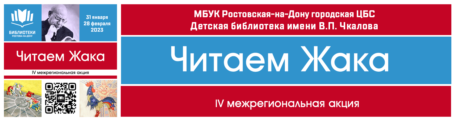 Детская библиотека имени В. П. Чкалова МБУК Ростовская-на-Дону городская ЦБС приглашает принять участие в IV межрегиональной акции «Читаем Жака», которая пройдет с 31 января по 14 февраля 2023 года.