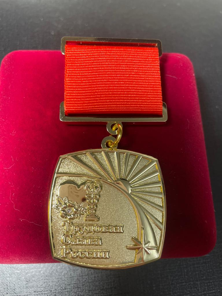 Она также была награждена золотой медалью «Трудовая Слава России» за активное участие и достижение высоких показателей в своей профессиональной деятельности.