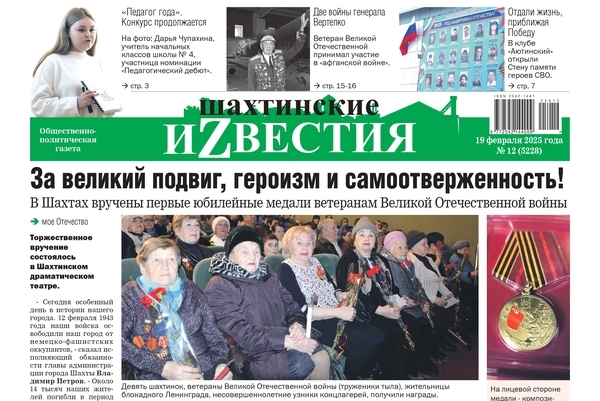 Сегодня среда, 19 февраля, в свет вышел новый номер «Шахтинских известий»