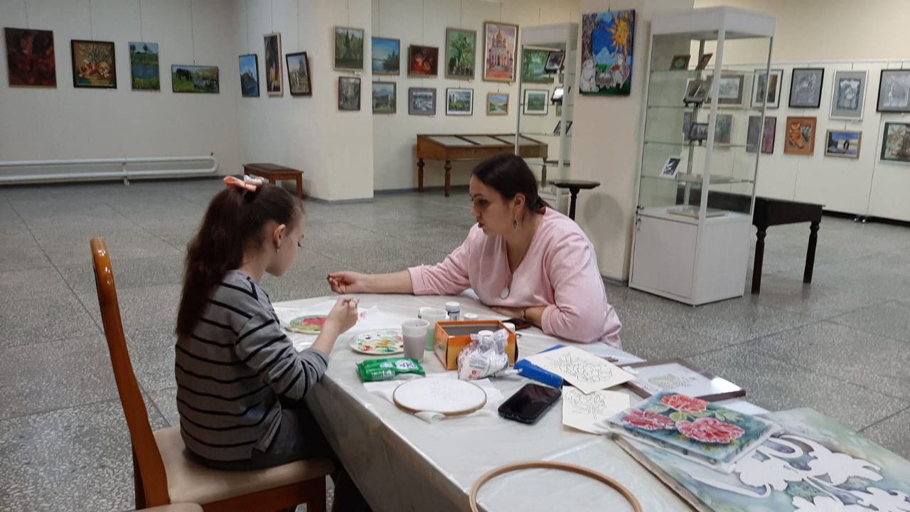 Посетители ознакомились с экспозициями выставочного зала и видами декоративно прикладного искусства на мастер-классах «Батик» и «Витражная миниатюра».