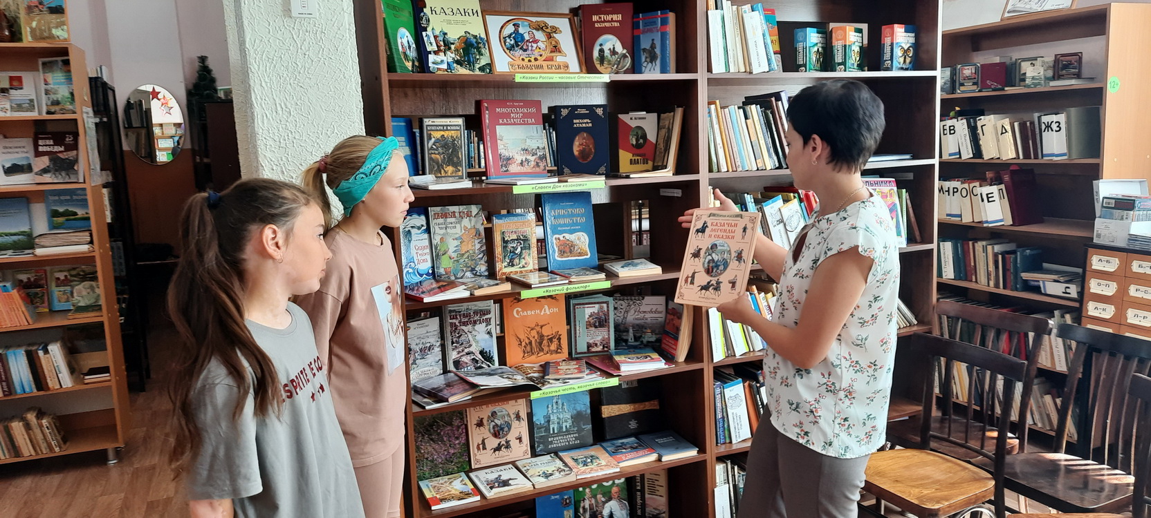 В завершение мероприятия ребята вспомнили казачьи пословицы и поговорки, узнали о нравственных устоях казачьей жизни, как дорожили казаки своей семьей и детьми. Ребятам были рекомендованы книги с книжной выставки «Степь донская широка, как казачья душа».