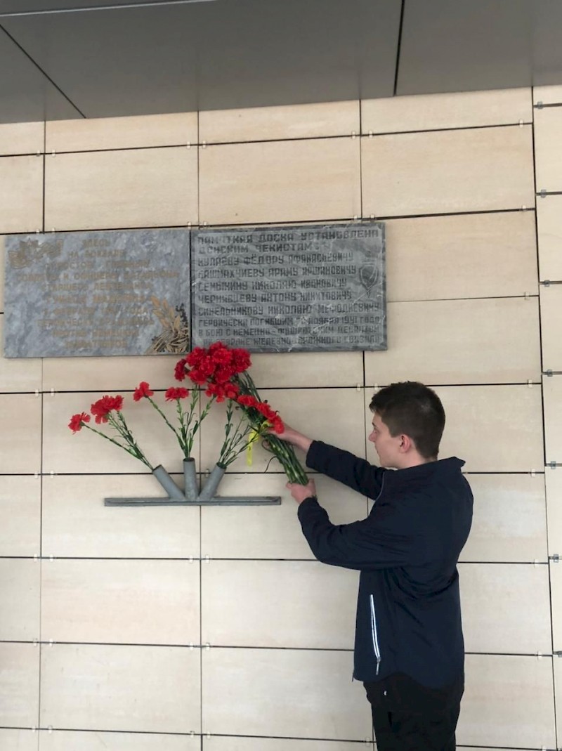 Студенты и преподаватели техникума почтили память чекистов, павших в неравном бою с гитлеровцами, и возложили красные гвоздики к памятной доске воинам-чекистам, геройски погибшим в бою с немецко-фашистскими захватчиками.
