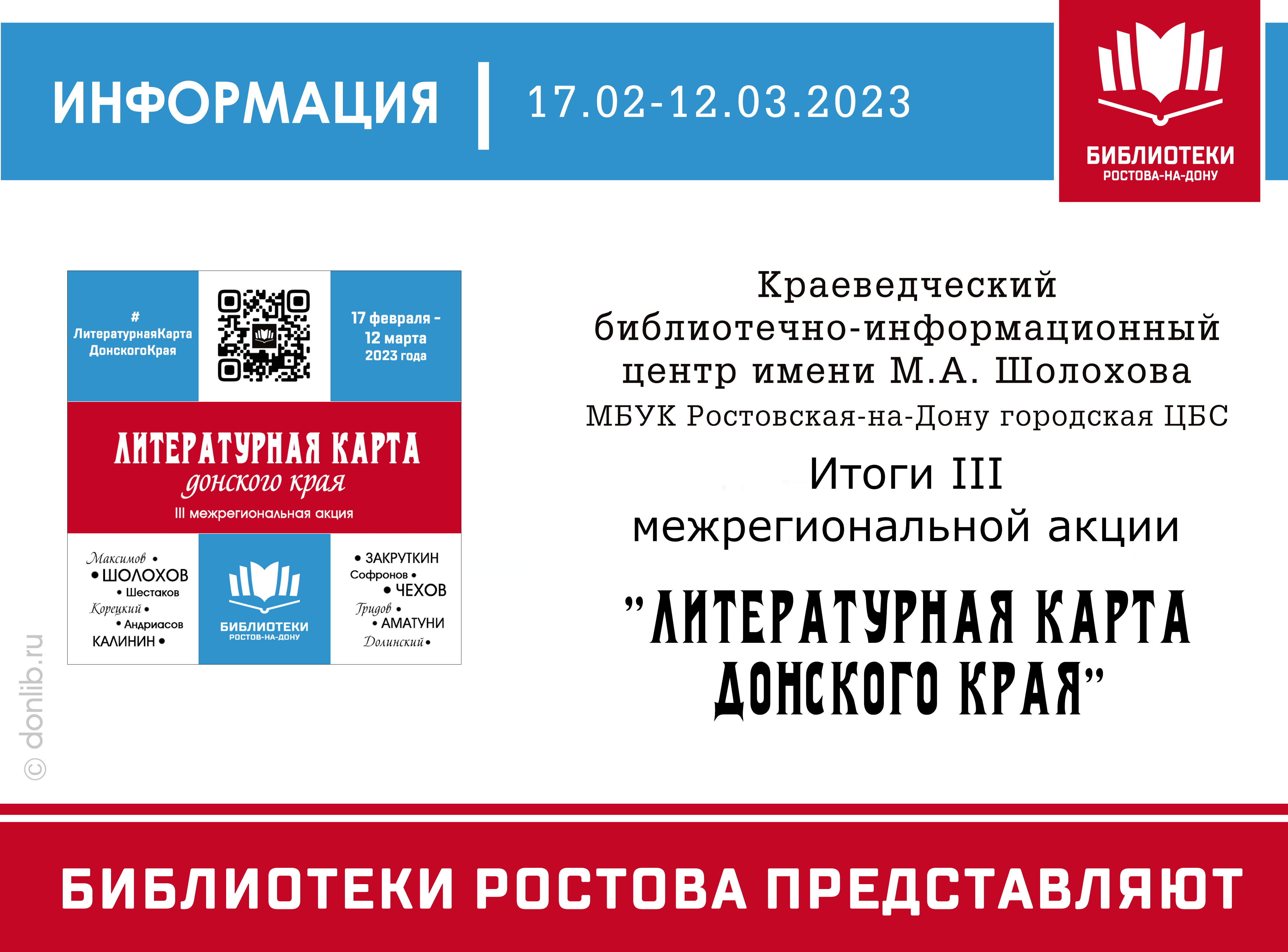 Третья межрегиональная акция «Литературная карта донского края» проходила с 17 февраля 2023 года по 12 марта 2023 года.