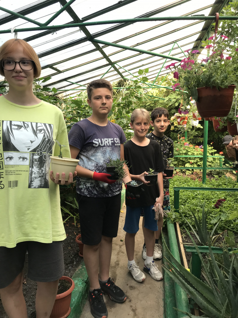 На учебно-опытном участке эколого-биологического Центра трудятся более 60 мальчишек и девчонок из школ №2, 5, 6, Гимназии №7. Подростки, вооружившись садовым инструментом, поливают цветы, удаляют сорняки. Кроме того, ребята знакомятся и ухаживают за питомцами живого уголка – черепахами красноухими Средиземноморскими, аквариумными рыбками, веселыми попугаями и моллюсками - ахатинами.
