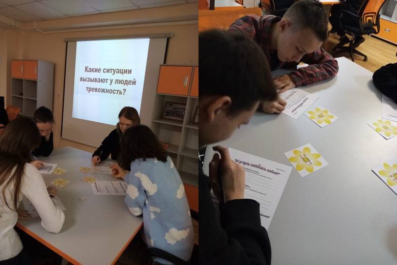 Старшеклассники работали в индивидуальных бланках, активно участвовали в беседе: раскрывали понятия «тревожность» и «стресс», подбирали «здоровые» способы преодоления тревожности.