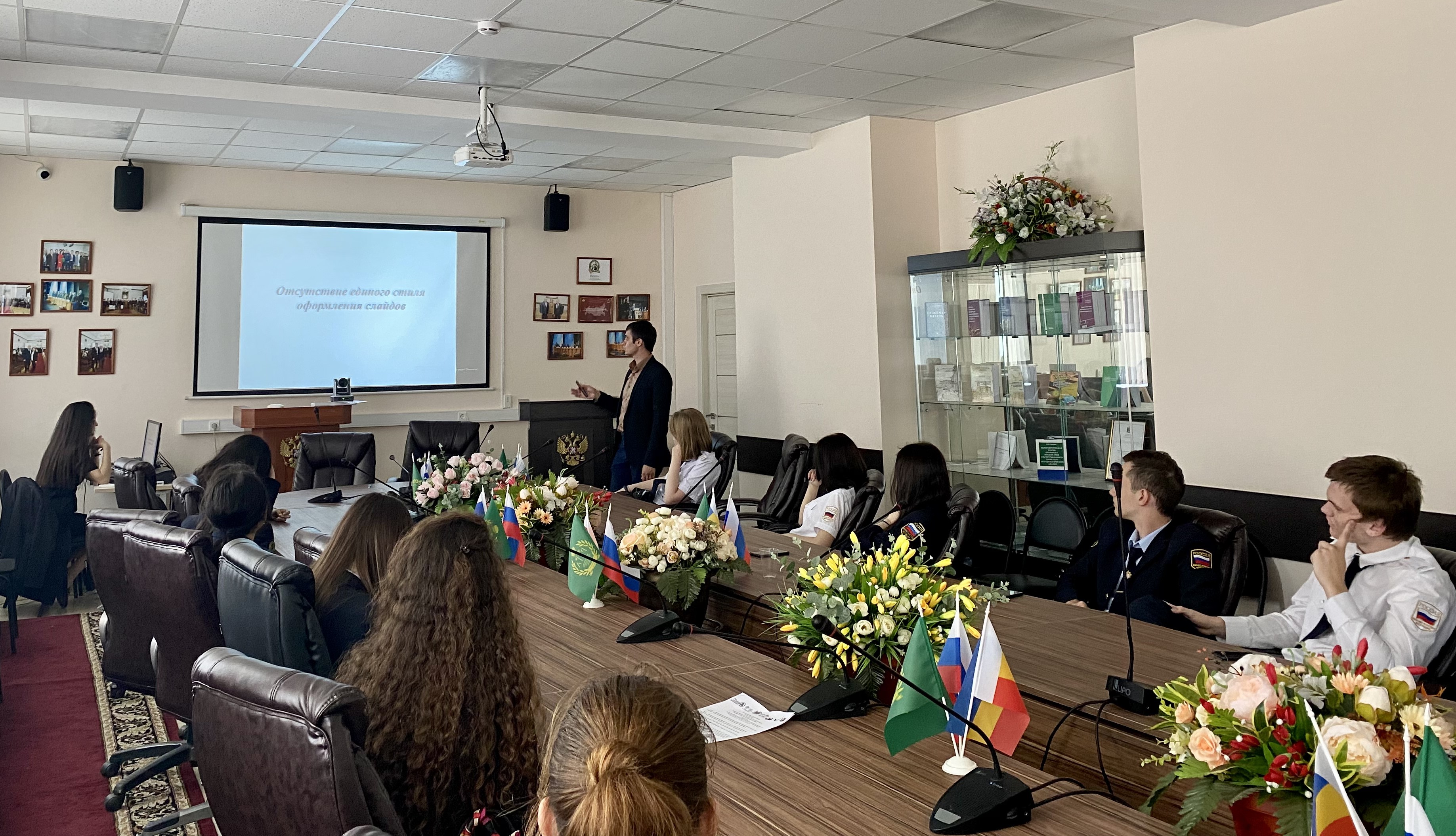 В ходе научного семинара, проведенного под руководством преподавателя, к.ю.н. Тишакова Максима Петровича, участники обсудили ключевые особенности подготовки презентации к научному докладу, основные требования к мультимедийным материалам, проанализировали на практических примерах наиболее распространённые ошибки и проблемные вопросы.