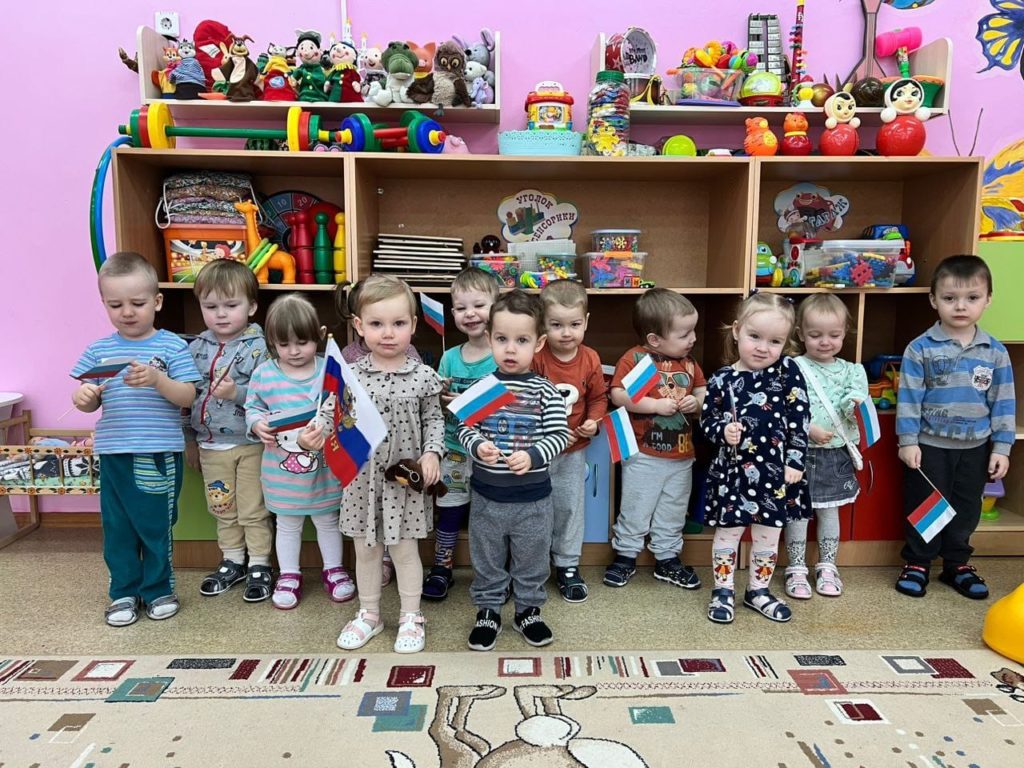 На этой неделе малыши ясельной и младших групп детского сада «Лазорик» знакомились с официальными символами России: флагом, гербом и гимном.