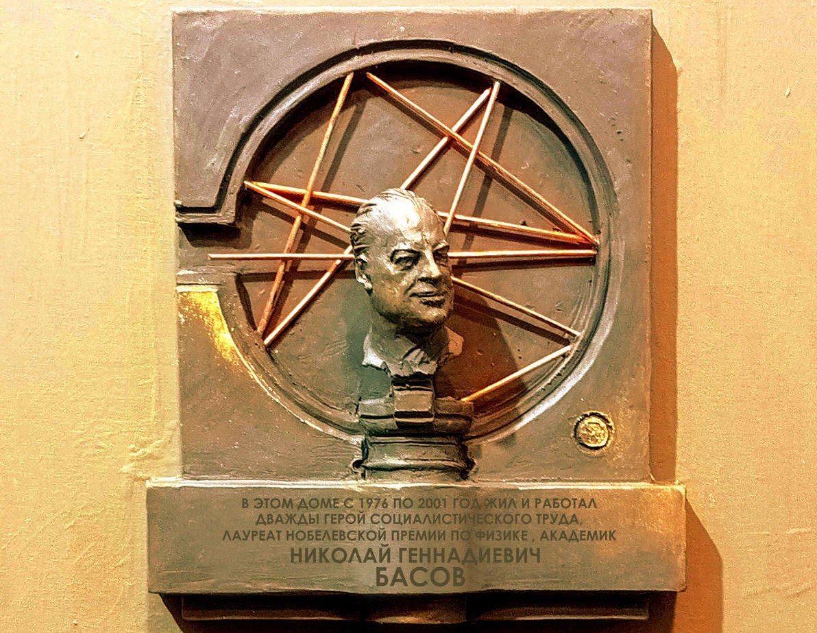 Мемориальная доска Николая Басова в Москве на доме, где он жил, займет достойное место в географически распределенной композиции Памяти великого ученого: мемориальные доски, бюсты и памятники установлены на его родине – в Усмани и на воронежской земле, в местах учебы и работы ученого – в НИЯУ МИФИ и Физическом институте имени П.Н. Лебедева Российской академии наук.