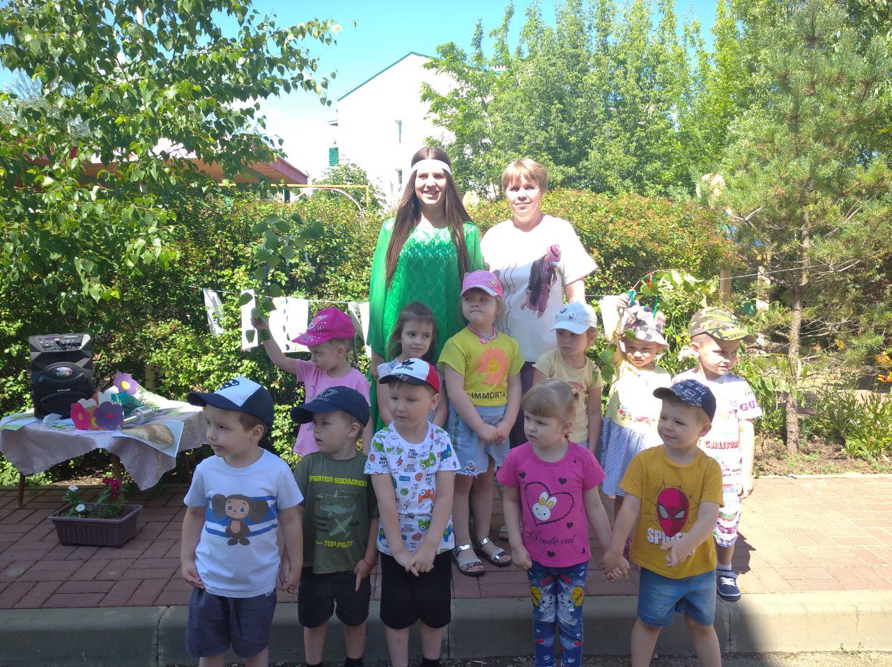 Воспитанники приготовили и рассказали стихи. Поиграли разделившись на команды в эстафеты: «Собери венок из цветов», «Повяжи ленточку березке», исполнили русскую народную песню «Во поле березка», водили хороводы, отгадывали интересные загадки, танцевали, веселились!