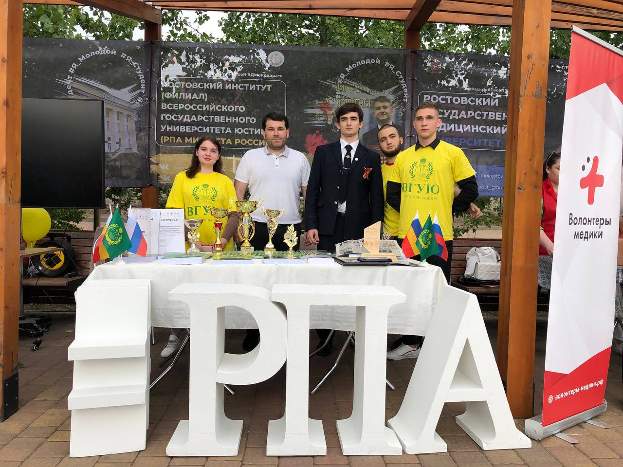 Студенты Ростовского института (филиала) ВГУЮ (РПА Минюста России) под руководством заместителя директора по воспитательной работе З.Г. Гереева развернули выставочную площадку учебного заведения, продемонстрировали достижения вуза гостям праздника, рассказали об образовательных программах и научных направлениях, реализуемых в институте.