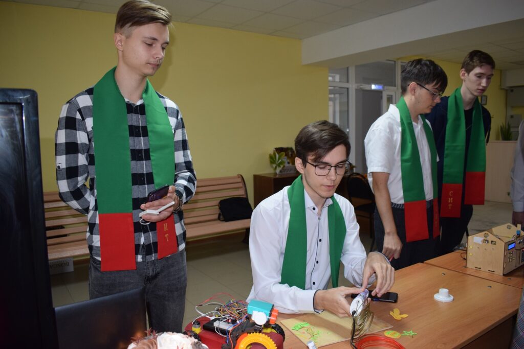Студенты разных специальностей демонстрируют гостям, чему они успели научиться. Будущие повара-кондитеры показывали искусство карвинга и приготовления самых вкусных пирожных. Соседние стенды привлекли неравнодушных к технике. Здесь всё показывали и обо всём рассказывали студенты, обучающиеся по специальности «Автоматизация производственных процессов и производств» с преподавателем Алексеем Ткаченко. В частности, продемонстрировали новое оборудование, поступившее в рамках нацпроекта «Образование» для открывшихся буквально за несколько дней до праздника мастерских для демоэкзамена по компетенции «Промышленная автоматика». А вот — уже собственноручно сконструированный студентами под руководством наставников программируемый мехатронный модуль для сортировки деталей.