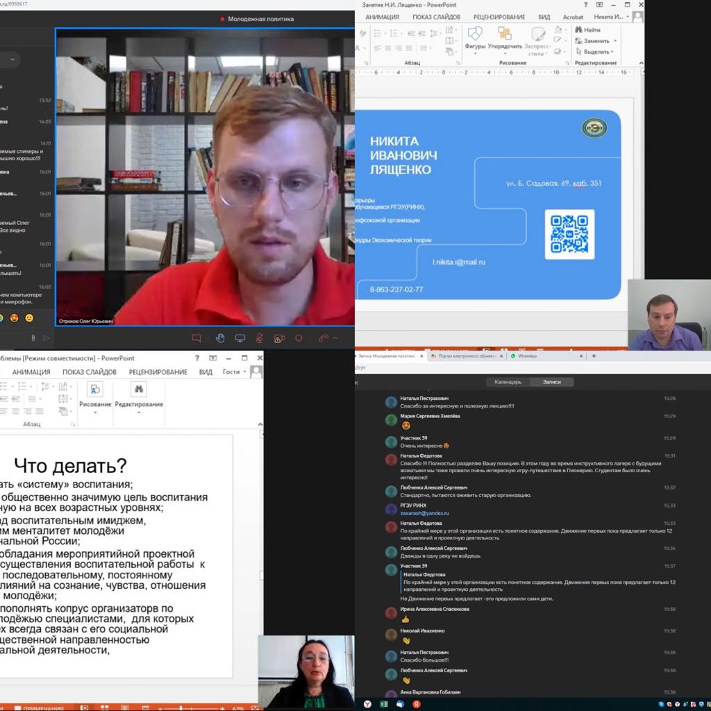 С 5 по 16 июня специалисты АРМИ проходят дистанционное обучение в Бизнес-школе РГЭУ(РИНХ), где сильнейший преподавательский состав помогает им изучать эффективные механизмы взаимодействия государства и молодежи, а также использовать в своей деятельности современные технологии и методы работы.