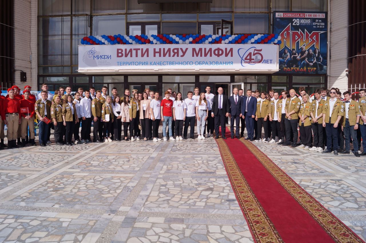 В торжественном собрании, состоявшемся в городском Дворце культуры им. Курчатова 5 июня, приняли участие ректор НИЯУ МИФИ Владимир Шевченко , проректоры НИЯУ МИФИ Елена Весна , Роман Черниговцев , советники при ректорате НИЯУ МИФИ Нуржан Нурахов , Биккузина Алия , руководители филиалов НИЯУ МИФИ, депутат Государственной Думы Виктор Дерябкин , Глава Администрации г. Волгодонска Сергей Макаров , председатель Волгодонской городской Думы – Глава г. Волгодонска Сергей Ладанов и представители депутатского корпуса города, Депутат Законодательного собрания Ростовской области Виктор Халын , заместитель генерального директора - директор филиала АО «Концерн Росэнергоатом» «Ростовская атомная станция» Андрей Сальников , технический директор АО «АЭМ-технологии» Михаил Корчагин , руководитель проекта управления развития корпоративной культуры «Концерн Росэнергоатом» Ирина Шаповалова , руководители многочисленных предприятий-партнеров – в прошлом выпускники НИЯУ МИФИ, а сейчас занимающие высокие посты в руководстве крупных компаний, Епископ Волгодонский и Сальский – Антоний , представители районных муниципалитетов, учреждений образования, здравоохранения и культуры г. Волгодонска, а также профессорско-преподавательский коллектив, сотрудники, студенты, ветераны и выпускники первого вуза г. Волгодонска.