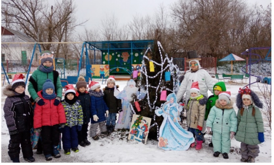 В день Старого Нового года ребята водили вокруг ёлочки хоровод, пели новогодние песни, играли в подвижные игры. К ним пришли два сказочных героя - снеговик и Баба-Яга.