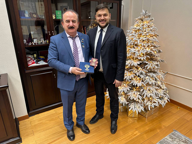 23 декабря заместитель науки и высшего образования РФ Айрат Гатиятов вручил знак «Почетный строитель России» ректору ДГТУ Бесариону Месхи.