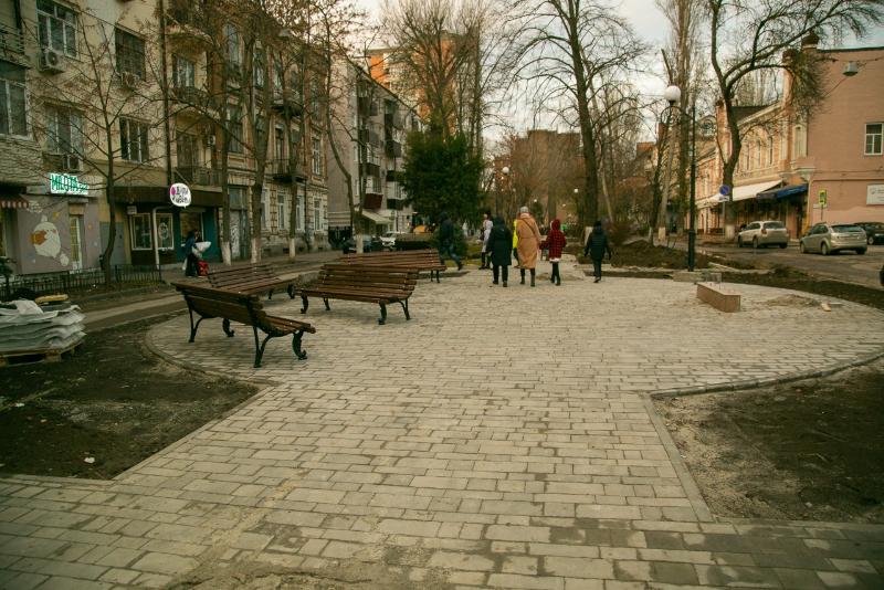 Подрядчик не успел завершить работы по благоустройству территории по переулку Университетскому до 15 ноября. «Блокнот Ростов» побывал на месте и показывает, как выглядит территория новой пешеходной зоны.На текущий момент практически завершены работы по укладке тротуарной плитки. Были вывезены остатки спиленных деревьев и завезена свежая земля. Правда от высадки полноценного газона было решено отказаться в пользу рулонного, который уже выглядит не слишком эстетично.
