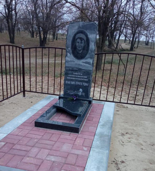 Памятную стелу на месте гибели Д. Кучеренко поставили в 1980 году, к 35-летию Победы. На открытие с Украины тогда приезжал младший брат Дуси Николай. В 2021 году памятник был обновлен. С портрета на нас смотрит улыбчивая девушка в белом беретике по довоенной моде. Девушка, именем которой названа улица, по которой она прошла к краю своей жизни. Кстати, улица раньше называлась Песчаная и была переименована по просьбе комсомольцев села.