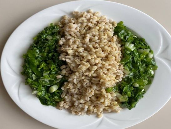 — Очень сытный углеводный завтрак. Перловая каша с тыквенным маслом и зеленым салатом, — рассказала Ирина.