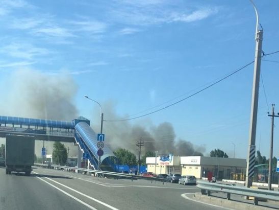 На фотографиях, которыми делятся очевидцы, видны клубы черного дыма. Судя по всему, пламя стремительно распространяется по территории. Площадь возгорания — 900 квадратных метров. На месте уже работают спасатели.