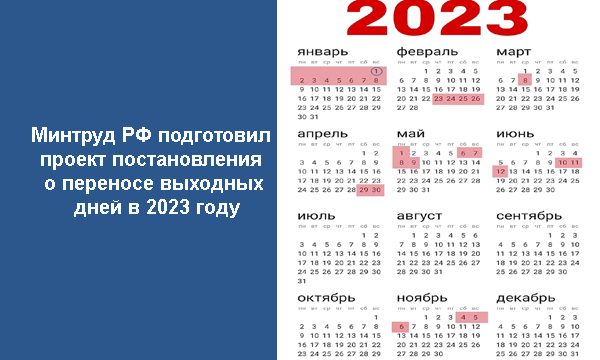 Константиновский район. ДОНСКИЕ ОГНИ. Минтруд РФ подготовил проект постановления о переносе выходных дней в 2023 году – об этом сообщает наш информационный партнер «Российская газета».