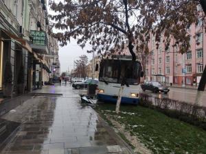 В центре Ростова троллейбус № 22 врезался в клумбу на тротуаре