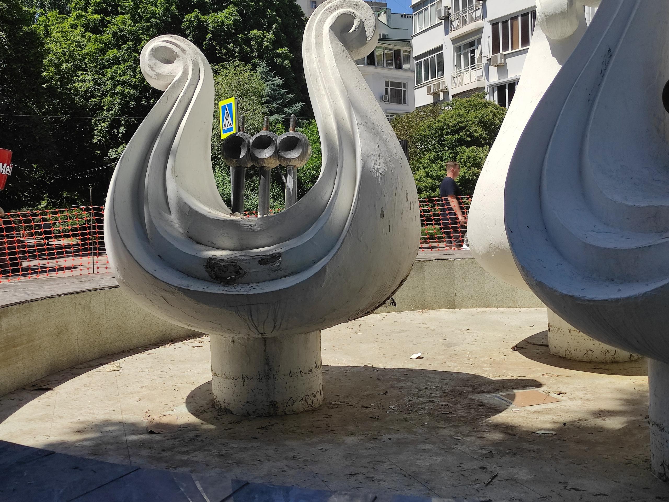 В Ростове на Пушкинской стартовали реставрационные работы фонтана Лиры. Первые слои краски начали снимать 11 июня.