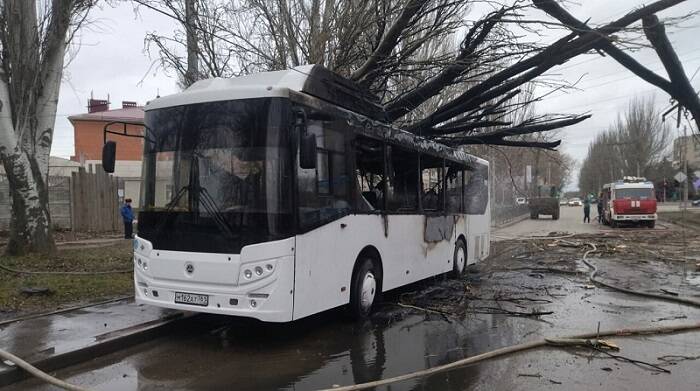 В Сети появились жуткие кадры полыхающего в Таганроге рейсового автобуса №31