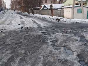 В поселке Таловый Шахт из-за коммунальной аварии на проезжей части образовалась серьезная наледь.
