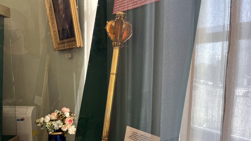 Большая часть петровских регалий заменена при Елизавете Петровне в 1746 году, а знамена еще и при Александре I – в 1803 году. Среди этих реликвий в фондах сохранились и будут использованы на выставке символы атаманской власти – пернач, бунчук с золотым шаром и значок Войска Донского, а также знамя за Северную войну.