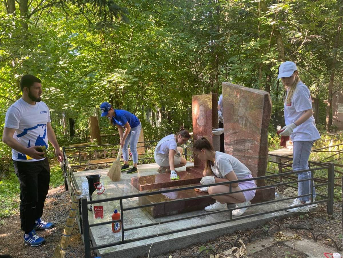Активисты «Единой России» благоустроили территорию захоронения военного летчика в Ворошиловском районе