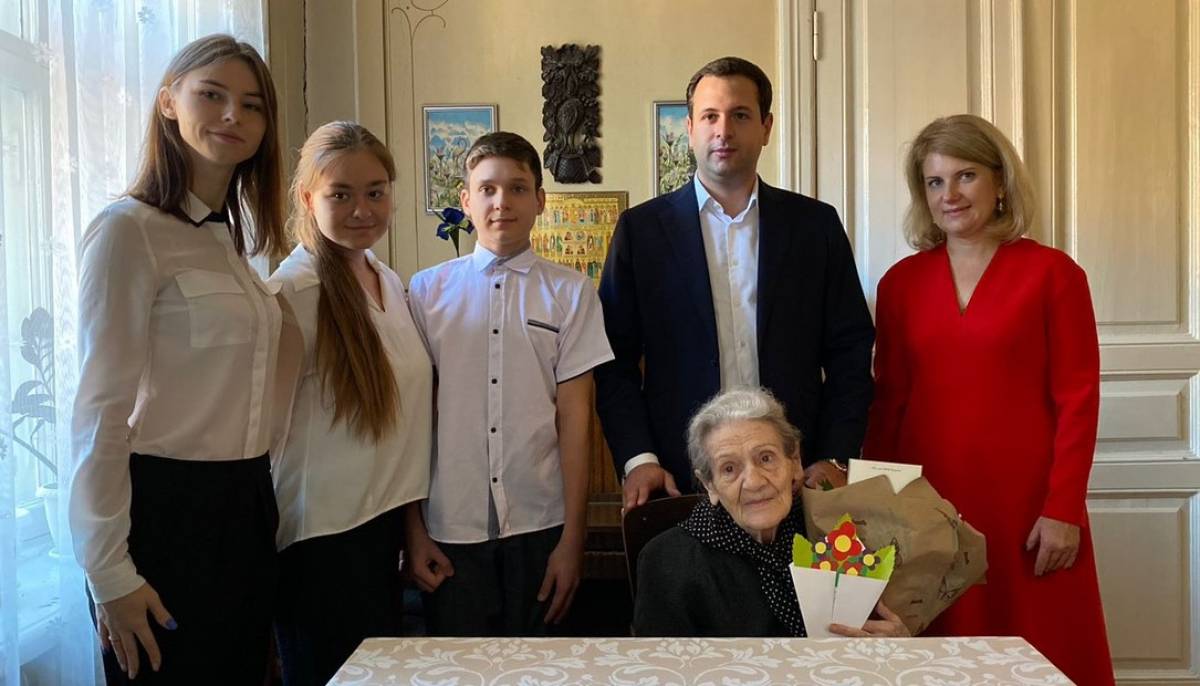 Депутат Михаил Дирацуян и учащиеся школы поздравили долгожителей Пролетарского района