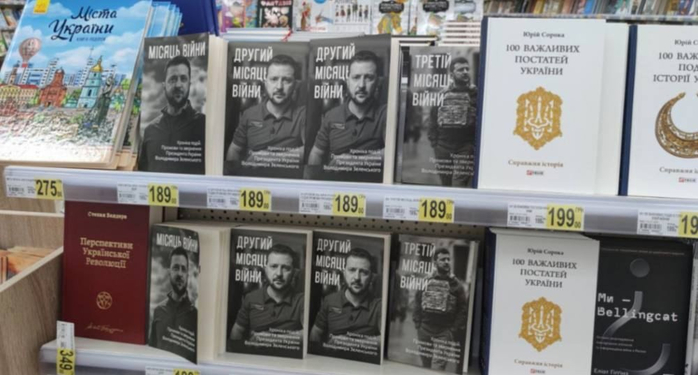 Кстати, на родине литератор Зеленский ценится гораздо дороже: в электронных магазинах и украинских супермаркетах сети «Ашан» продаются сборники речей Зеленского по 189 грн. за штуку. Благотворительностью здесь и не пахнет, ибо украинское издательство «Фолио» своего не упустит. Пока сборников всего пять, но производство поставлено на поток, который не иссякнет, пока идет война. Серия начинается книгой «Місяць війни. Хроніка подій. Промови та звернення Президента України Володимира Зеленського», потом идет «Второй месяц…», «Третий месяц…» и так далее. В каждой более 400 страниц. Если так пойдет, то рукой подать до собрания сочинений Ленина в 55 томах.
