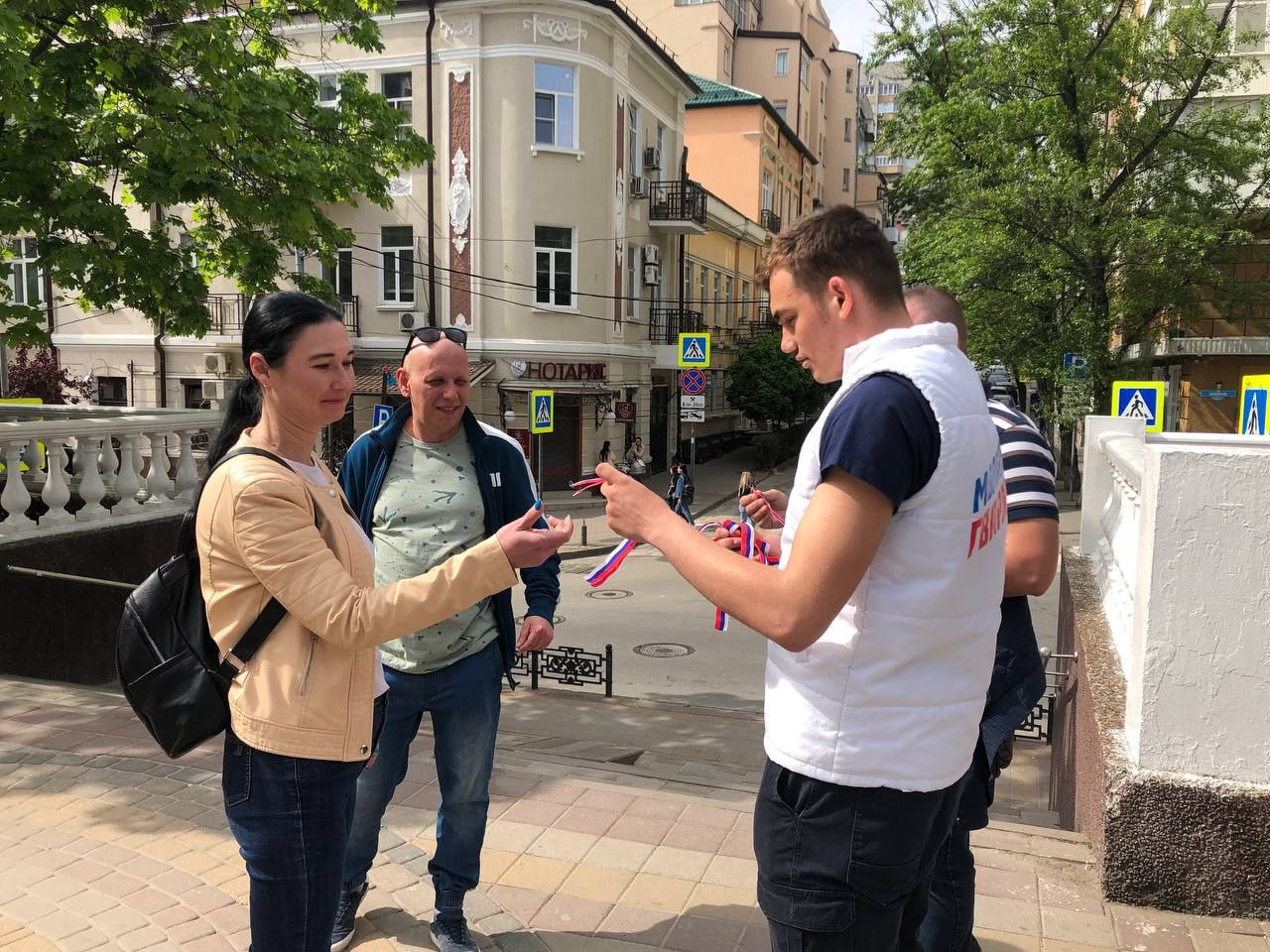 Молодогвардейцы Ростовской области организовали акцию по раздаче ленточек триколор