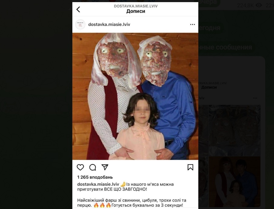 Львовский мясной магазин так рекламирует свою продукцию. Гнусно глумится над семьёй, погибшей на Крымском мосту.