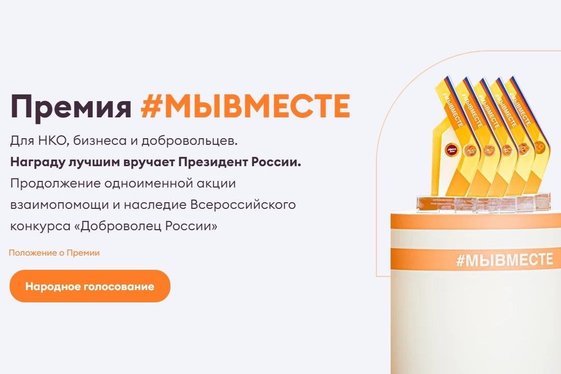 Премия #МЫВМЕСТЕ — это продолжение одноименной акции взаимопомощи, призванная поддержать социальные инициативы, помогающие людям по всей стране. Она объединяет волонтеров, коммерческие и некоммерческие организации, журналистов и блогеров, и всех неравнодушных граждан.