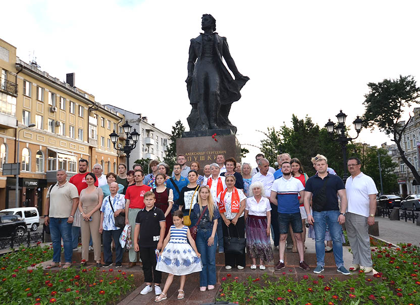 Шестого июня в шесть часов вечера на улице Пушкинской состоялась организованная Ростовским-на-Дону городским комитетом КПРФ церемония возложения цветов к памятнику великому российскому поэту. В акции приняли участие первый секретарь Ростовского-на-Дону горкома Компартии, руководитель фракции КПРФ в Ростовской-на-Дону городской Думе Ю.С. Нерсесян, секретари Ростовского-на-Дону горкома КПРФ Д.В. Животов и И.И. Кислицына, секретари Ростовского обкома Компартии И.М. Куцаева и И.Н. Нестеренко, руководитель фракции КПРФ в Законодательном собрании Ростовской области А.В. Мисан, депутат Ростовской-на-Дону городской Думы, первый секретарь Ворошиловского райкома КПРФ Н.В. Оськина, первые секретари районных комитетов КПРФ донской столицы.