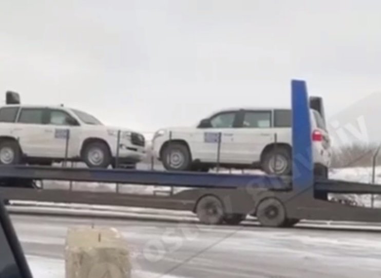 12 января в Ростове с помощью крана начали снимать внедорожники ОБСЕ, которые стояли на парковке возле железнодорожного вокзала.