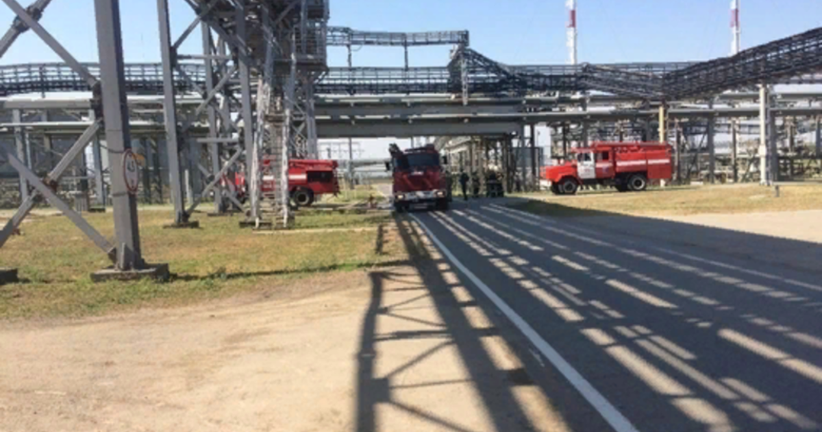 По одной из версий, возгорание произошло в результате атаки беспилотных летательных аппаратов, по предварительным данным – украинского производства. Специалисты считают, что один из беспилотников задел мачту громоотвода и упал на территории завода. Другой аппарат, возможно, стал причиной возгорания теплообменника.
